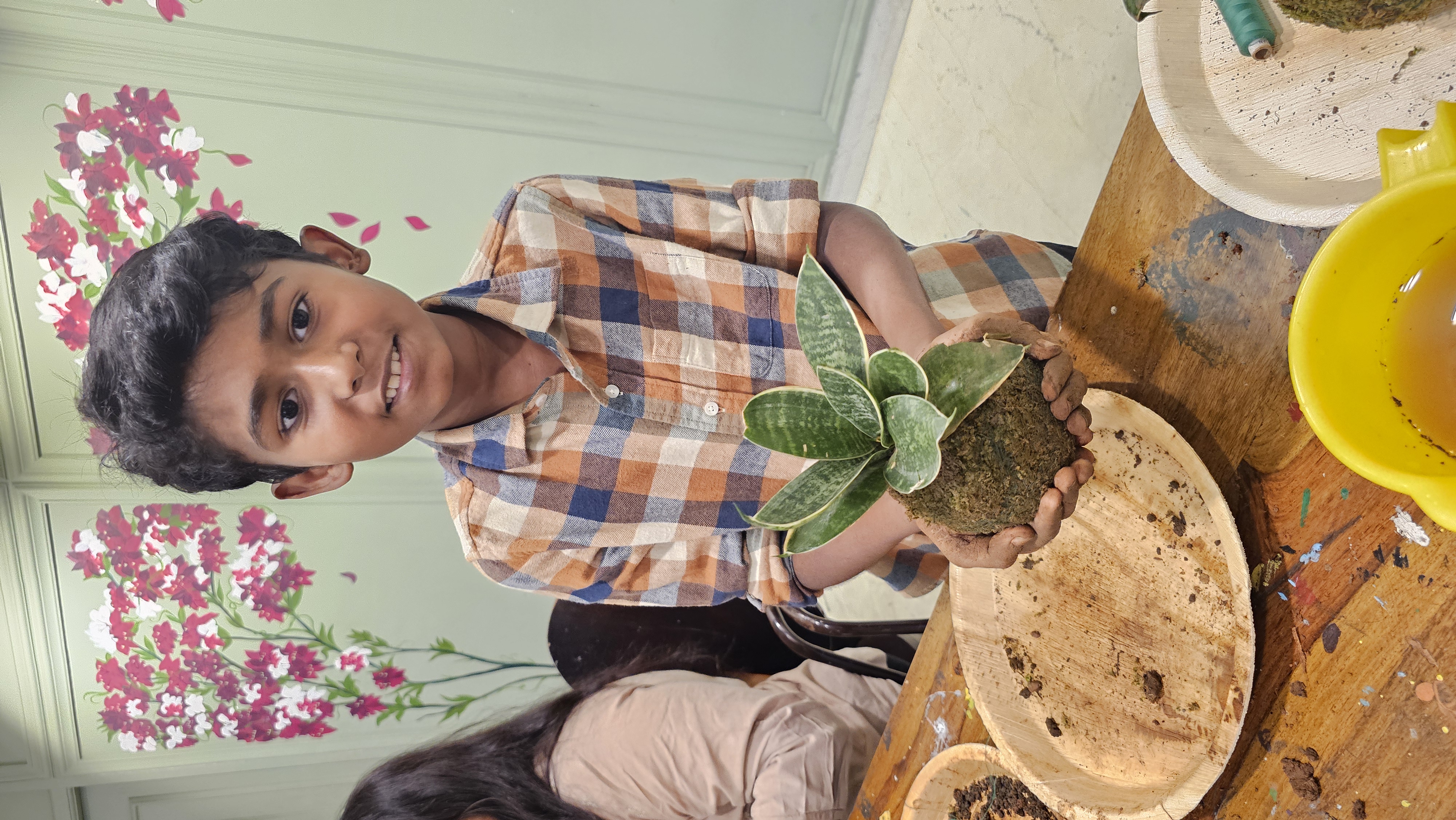 Child Displaying Kokedama