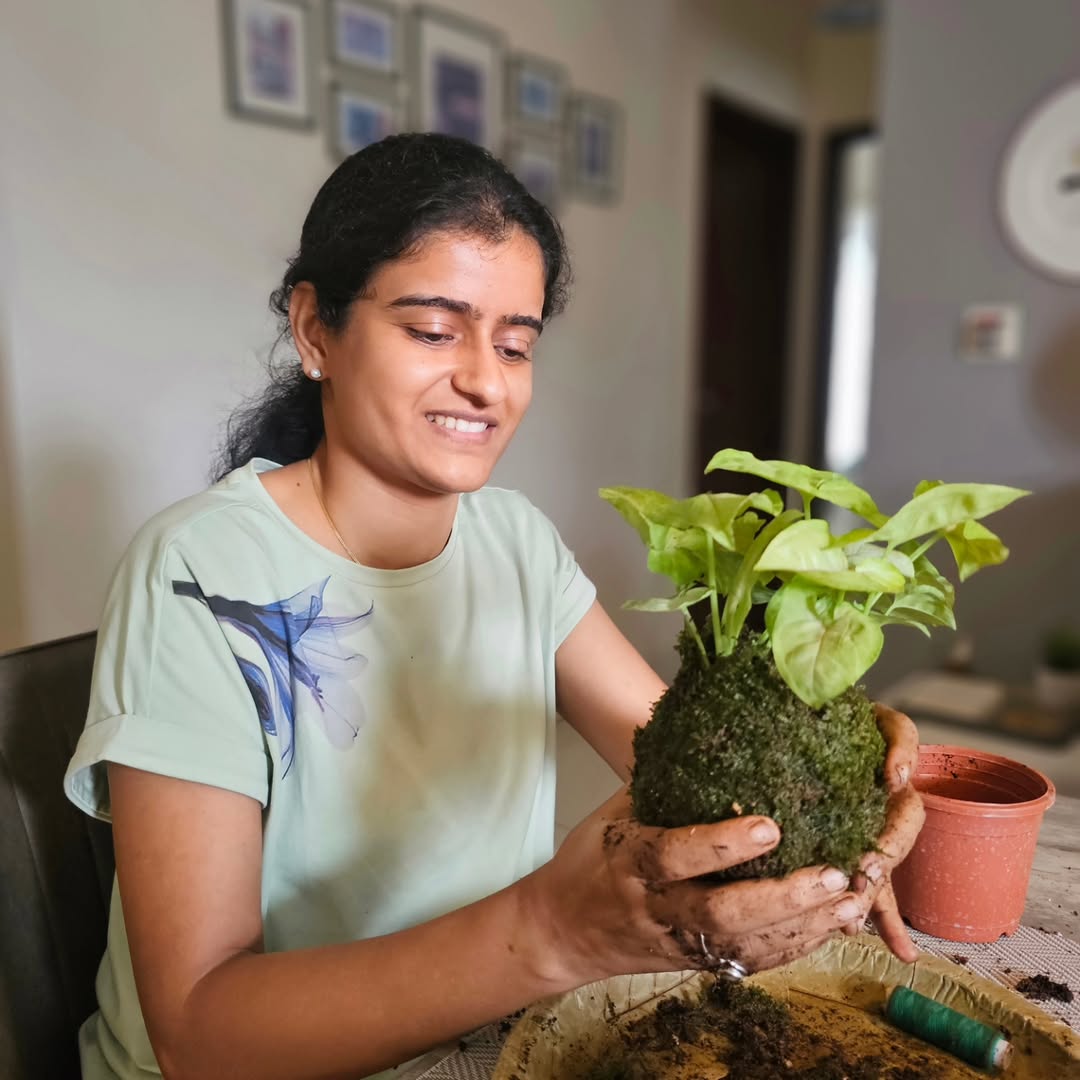 Shailaja discovered Kokedama during a stressful phase during COVID times. What began as personal therapy soon blossomed into a practice and a heartfelt calling.